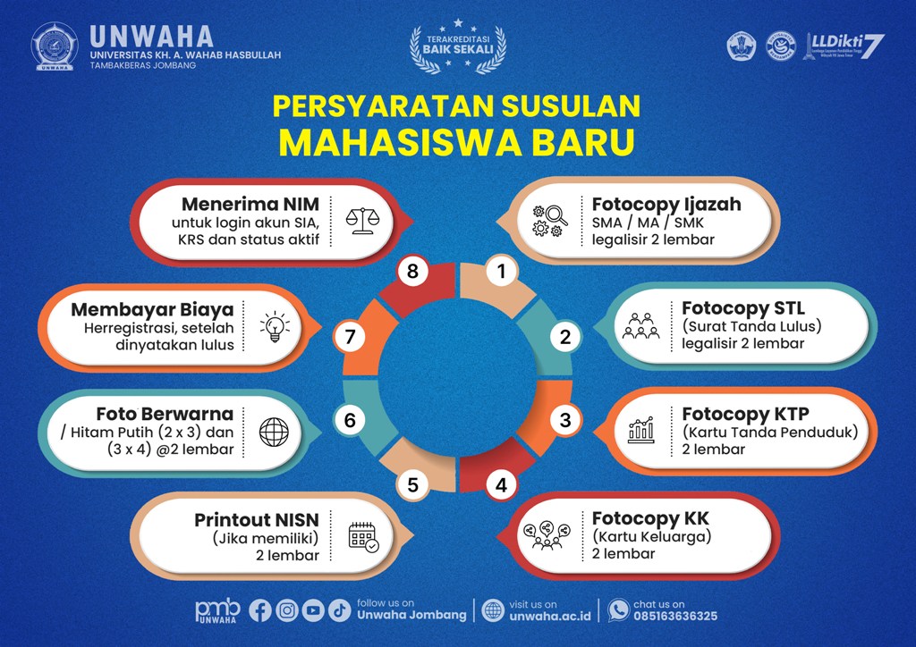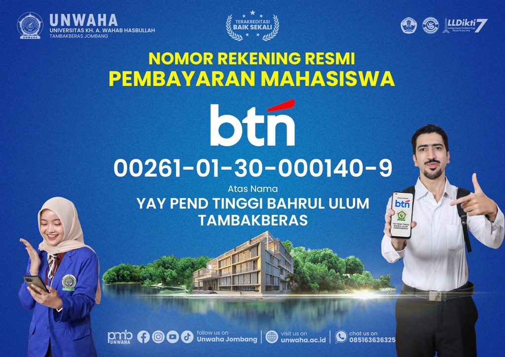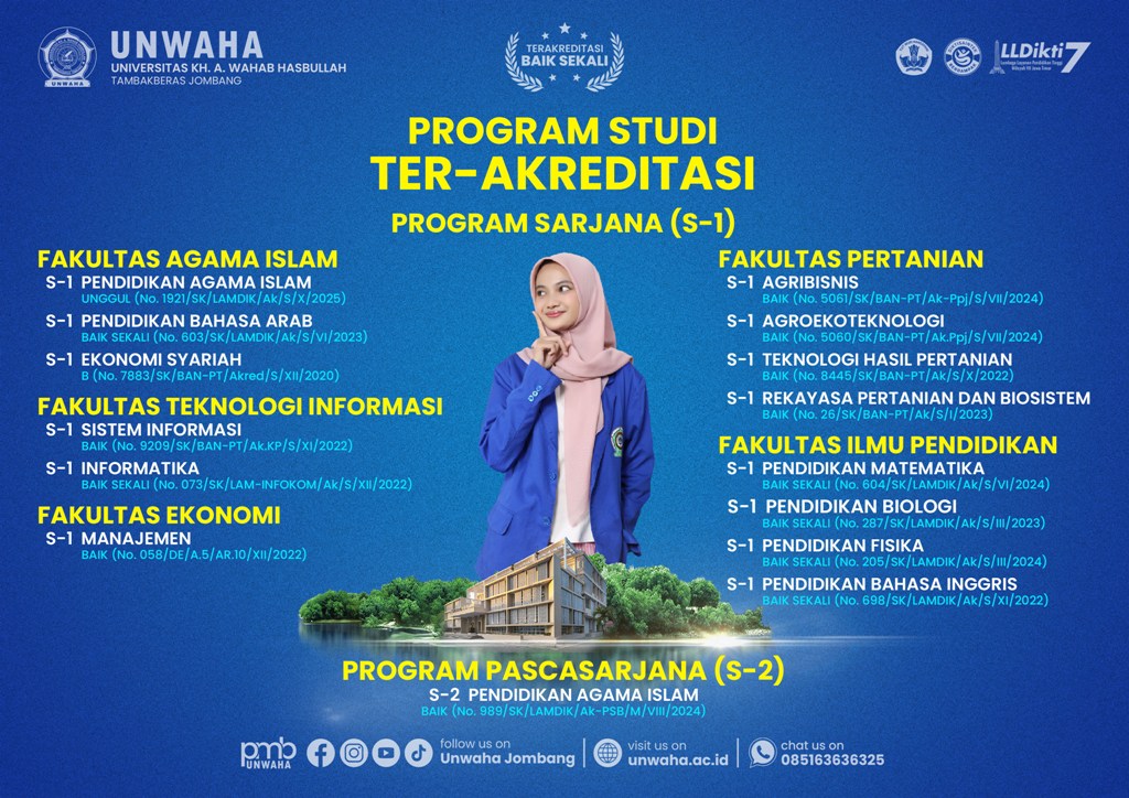Pendaftaran Online Jadwal Pendaftaran Biaya Kuliah Rekening Pembayaran Syarat Pendaftaran Download BrosurBrosur S1 Side ABrosur S1 Side BBrosur S2-Side ABrosur S2-Side B Penerimaan Mahasiswa BaruUniversitas KH. A. Wahab Hasbullah Tahun Akademik 2025/2026 DAFTAR SEKARANG