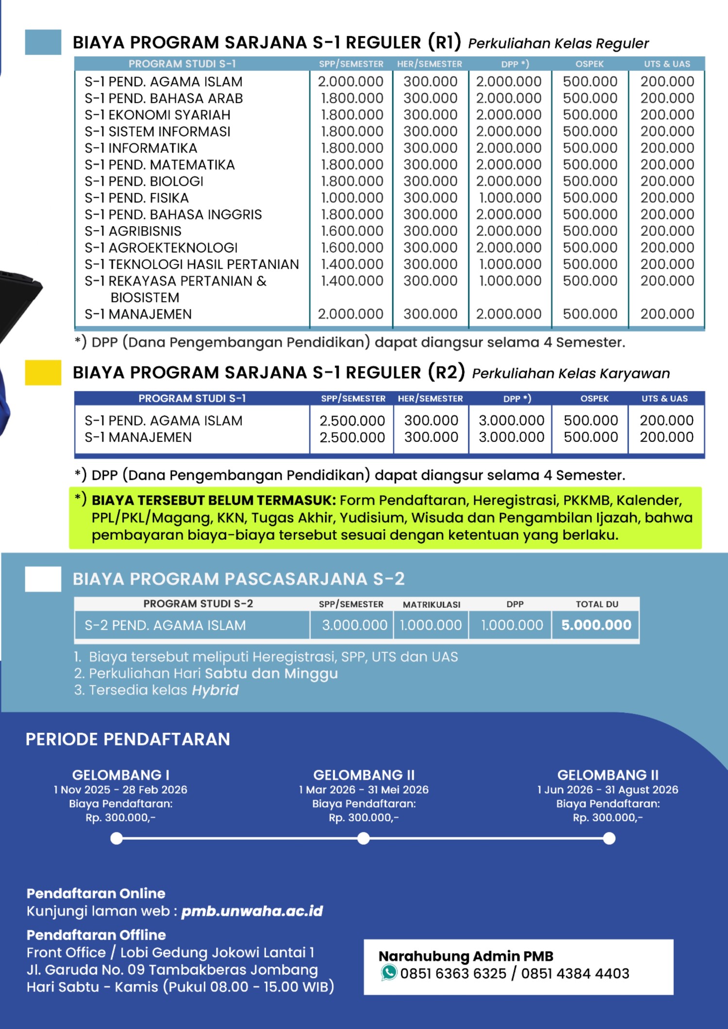 Pendaftaran Online Jadwal Pendaftaran Biaya Kuliah Rekening Pembayaran Syarat Pendaftaran Download BrosurBrosur S1Brosur S2 BIAYA PERKULIAHAN